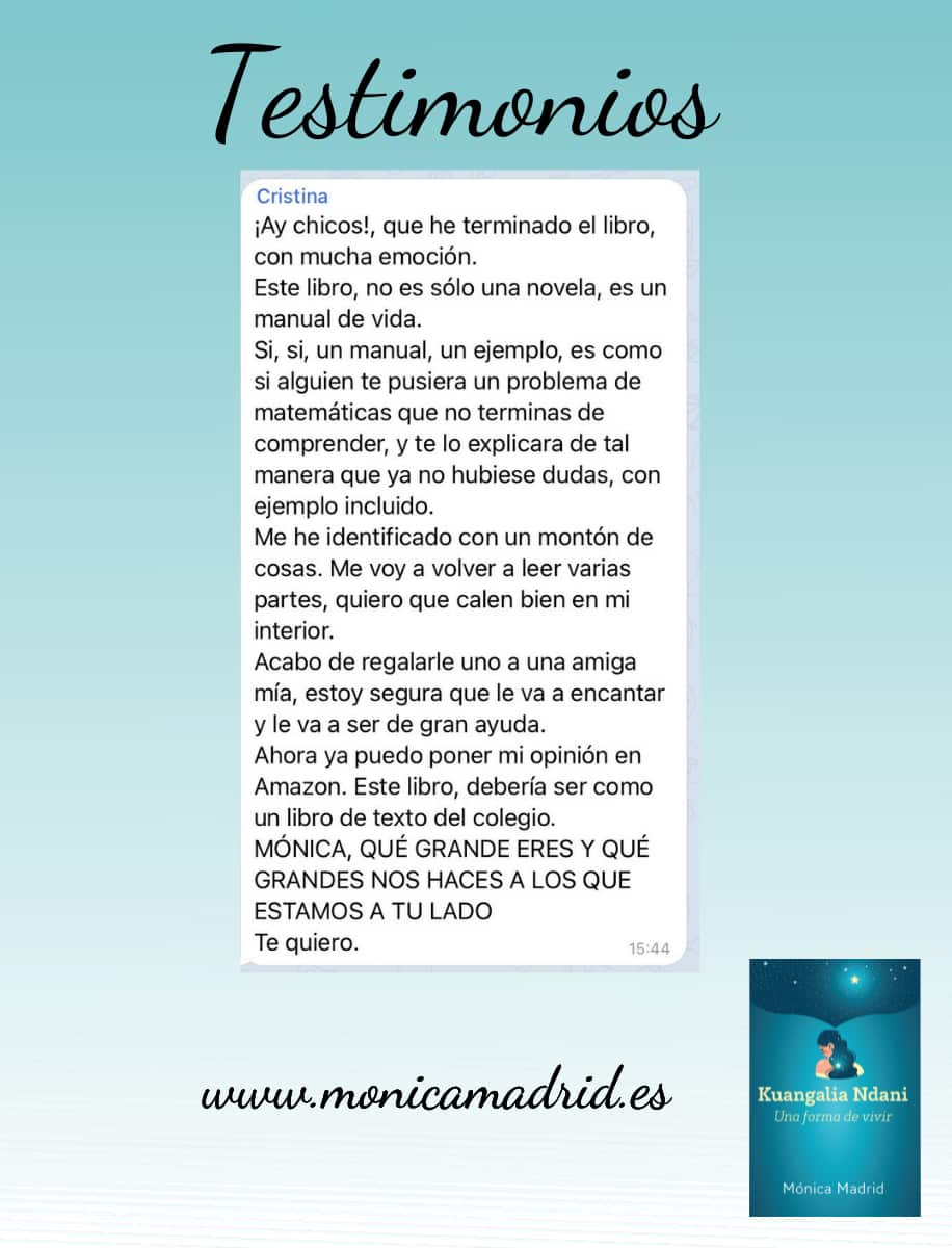Con esta novela, la autora te invita a un viaje interior, a mirar dentro de ti para abrazar lo de afuera, a observar sin juzgar lo que pasa en el instante presente, a entender la perfección que se encierra ahí.